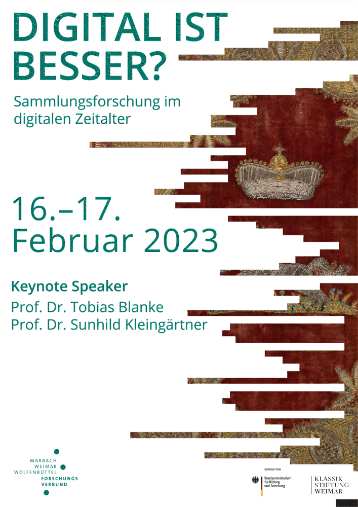 It was a great pleasure to conceptualise and host the end-term conference of the Marbach Weimar Wolfenbüttel Research Association at Klassik Stiftung Weimar last week (16/17 February). We asked Is digital better? and discussed this question with colleagues from the international community of digital collection research. Now on to the conference proceedings! WATCH THAT SPACE